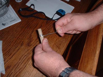 The working length of wire is first wrapped on a 1/2-inch wooden dowel to form a coil.